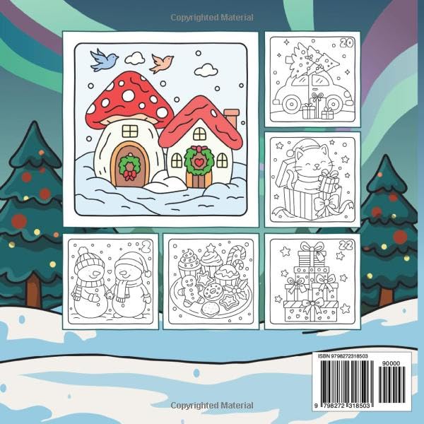 I denne jule malebog finder du 25 nummeret sider, plus 15 ekstra julesider, fyldt med nuttede, sjove og hygge momenter. 🎀 Hver side indbyder til at du bringer siderne til live med en masse farver 🩷