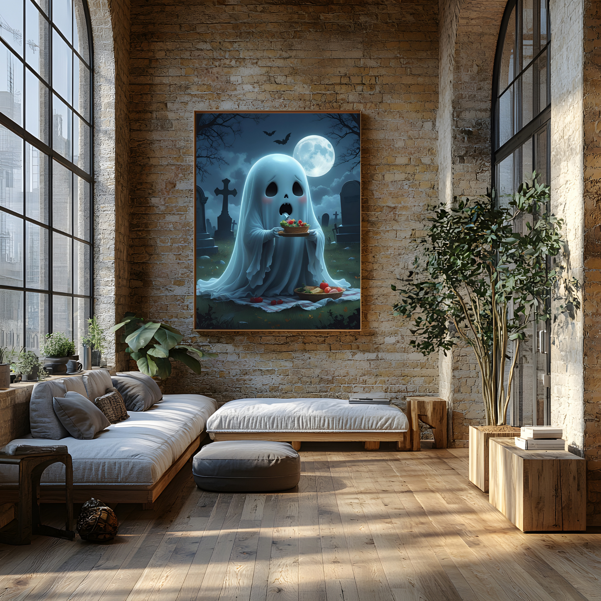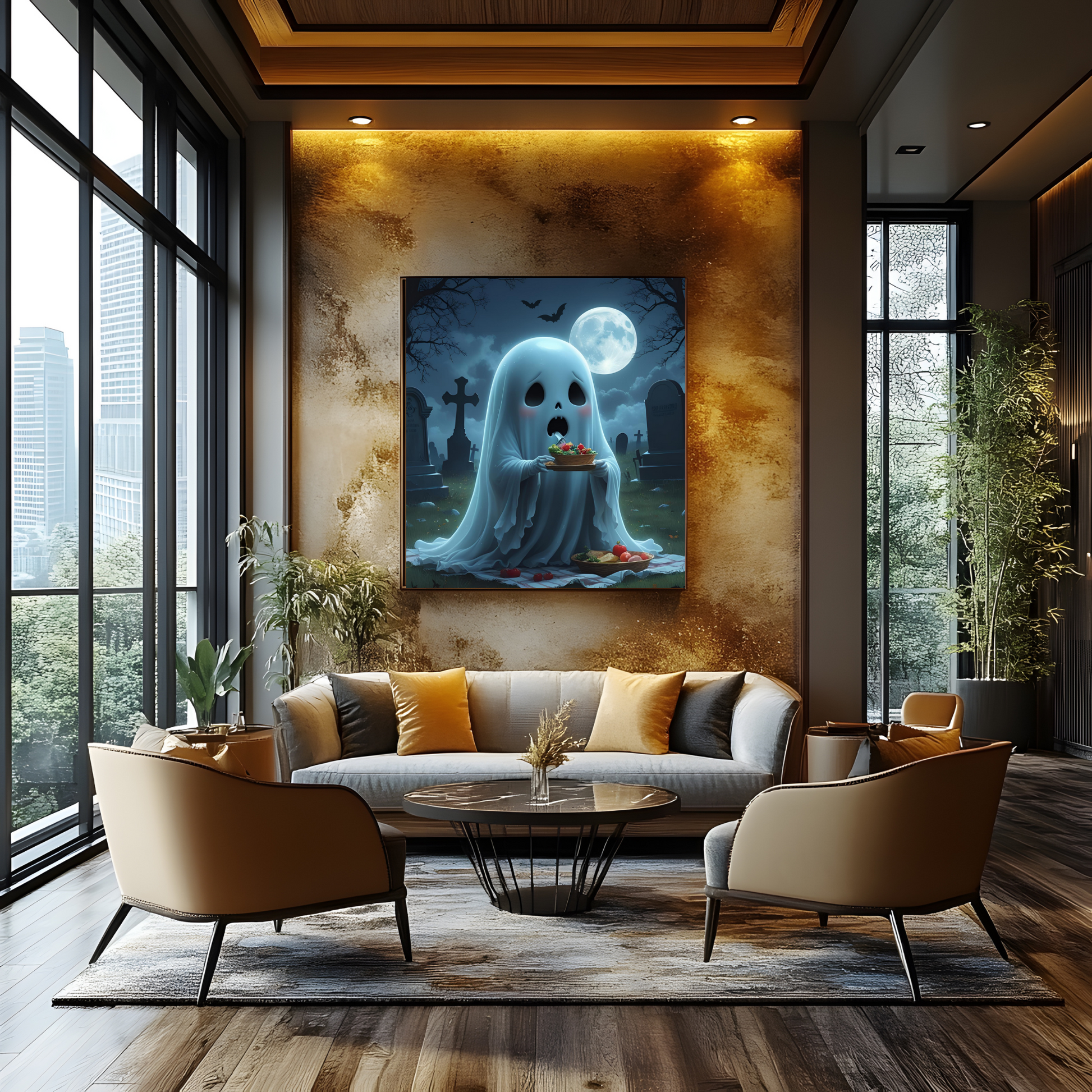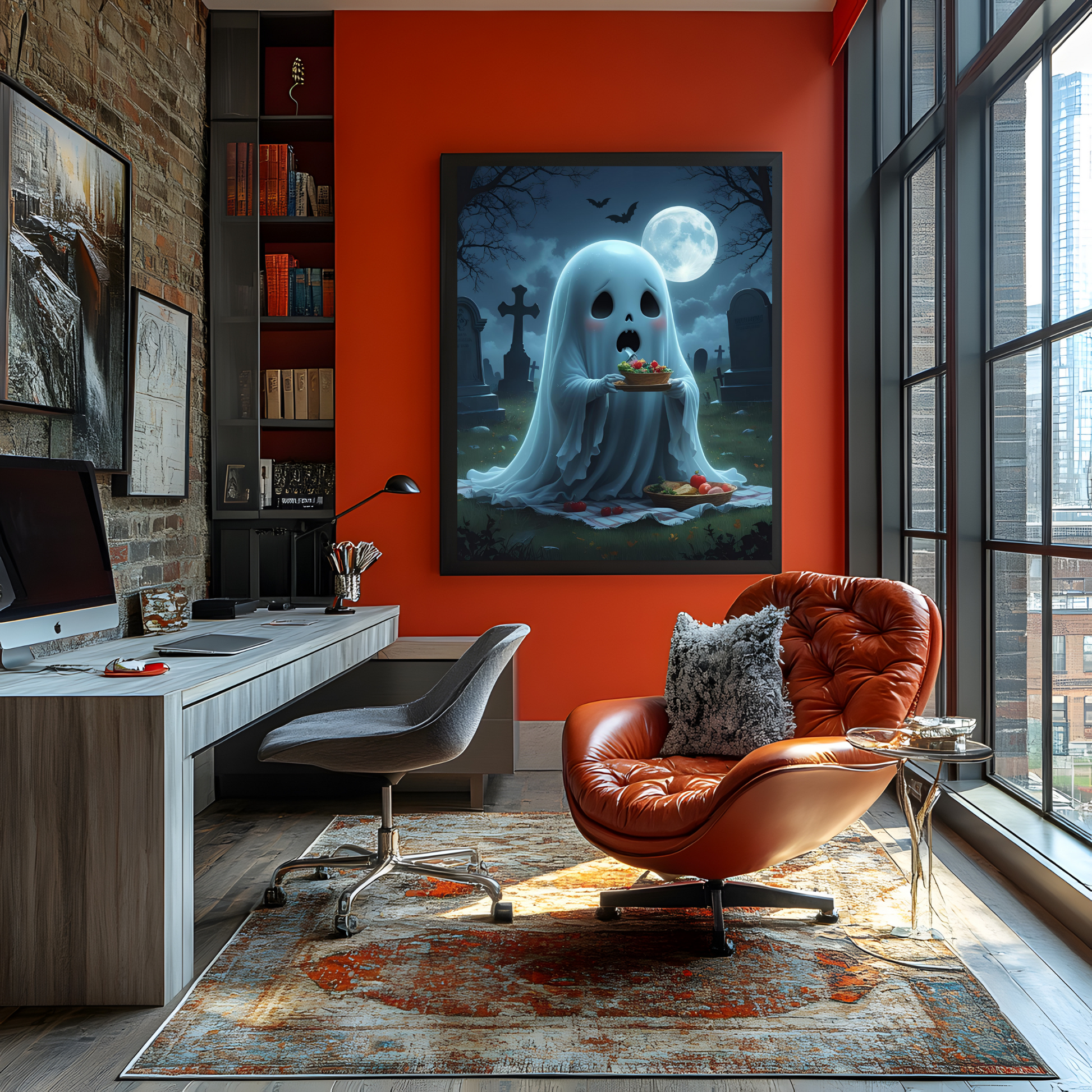 Bring et strejf af den charmerende nat-snackende spøgelse til dit hjem med dette unikke digitale kunsttryk med nat-snackende spøgelse! Dette fængslende maleri fremkalder en nostalgisk, let uhyggelig men dog kær scene, perfekt til at tilføre karakter til din sæsonbestemte eller helårsindretning. De rige teksturer og den atmosfæriske baggrund skaber en fantastisk stemningsfuld atmosfære.