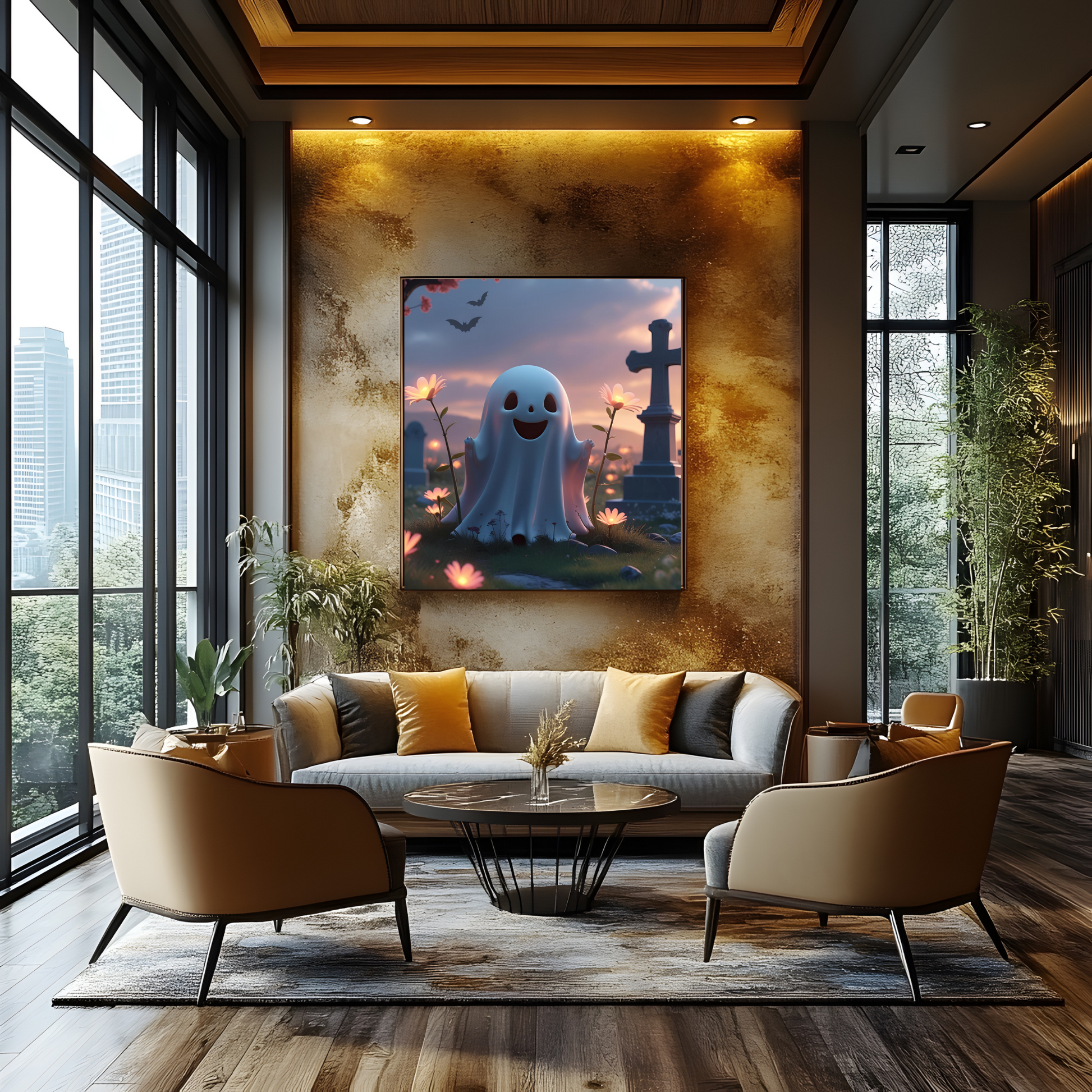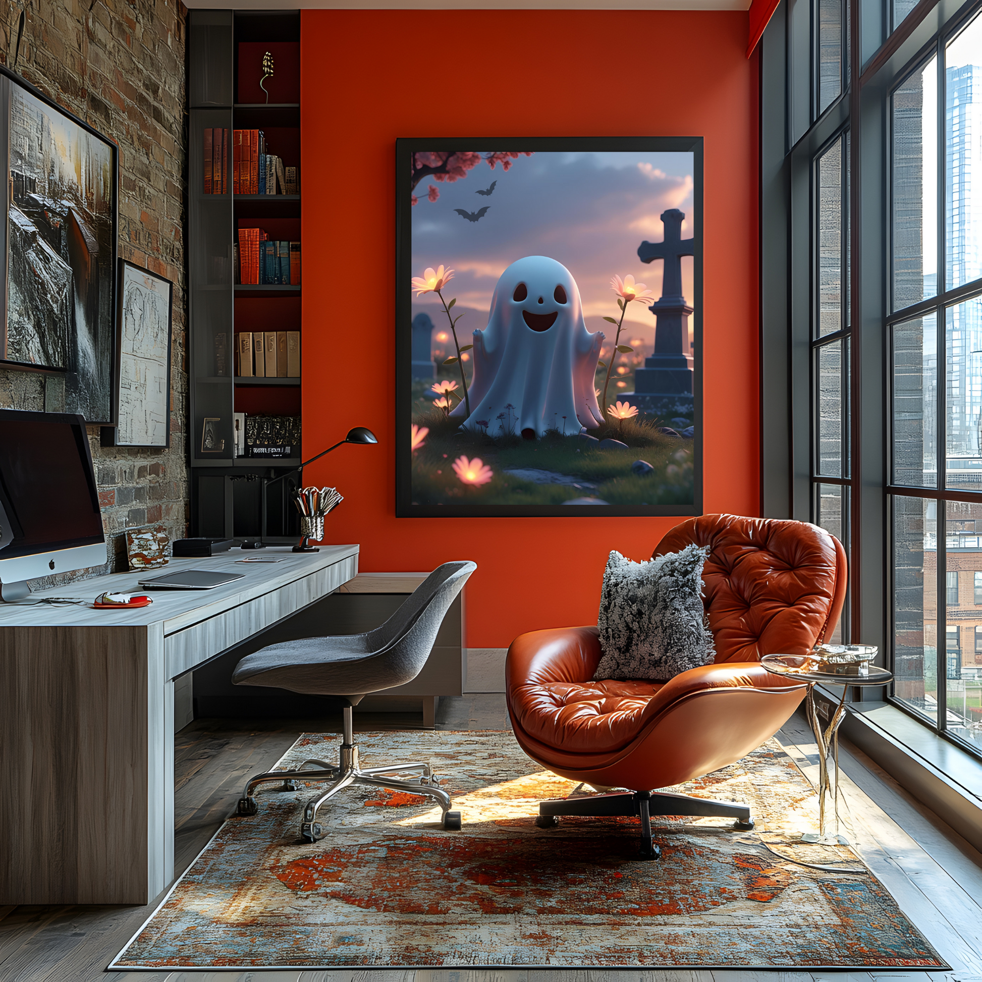 Bring et strejf af charmerende, Flower Ghost til dit hjem med denne unikke digitale kunsttryk, der præsenterer en Flower Ghost! Dette fængslende maleri fremkalder en nostalgisk, let uhyggelig, men alligevel elskværdig scene, perfekt til at tilføje karakter til din sæsonbestemte eller år-round indretning. De rige teksturer og den atmosfæriske baggrund skaber en vidunderligt stemningsfuld atmosfære..