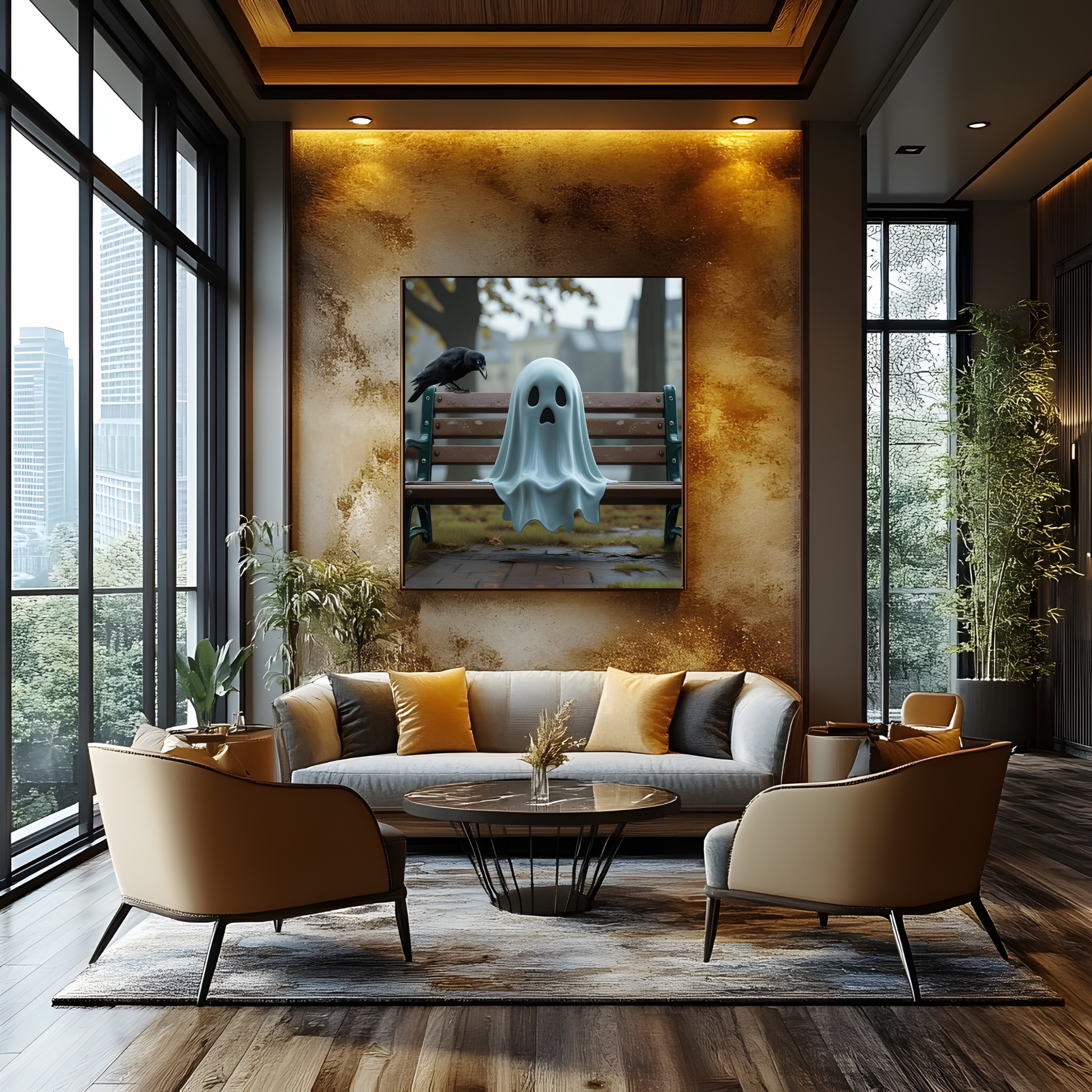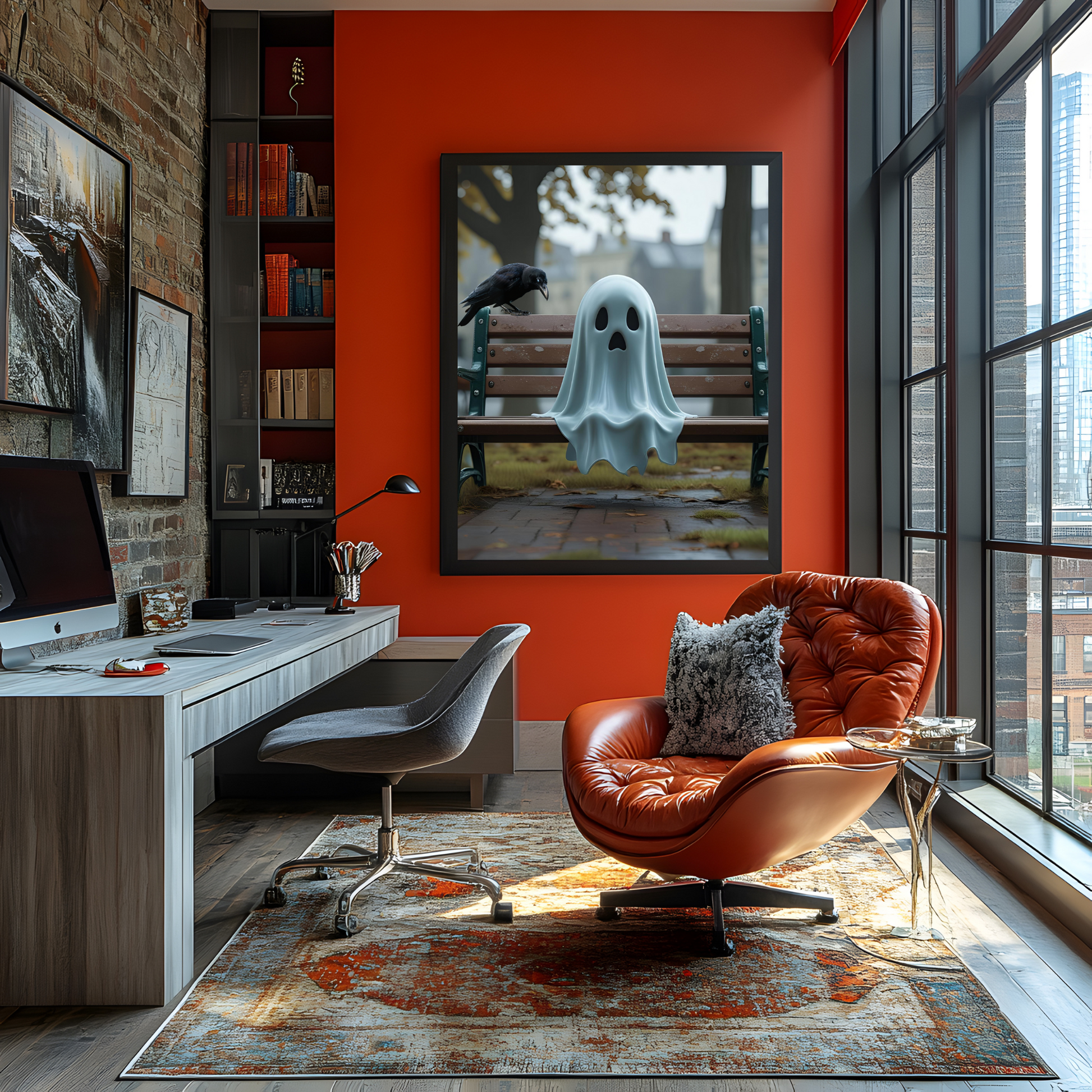 Bring et strejf af charmerende, skræmmende spøgelse ind i dit hjem med dette unikke digitale kunsttryk featuring et skræmmende spøgelse! Dette fængende maleri fremkalder en nostalgisk, let uhyggelig, men dog kær scene, perfekt til at tilføre karakter til din sæsonbestemte eller helårsindretning. De rige teksturer og den atmosfæriske baggrund skaber en fantastisk stemningsfuld atmosfære.