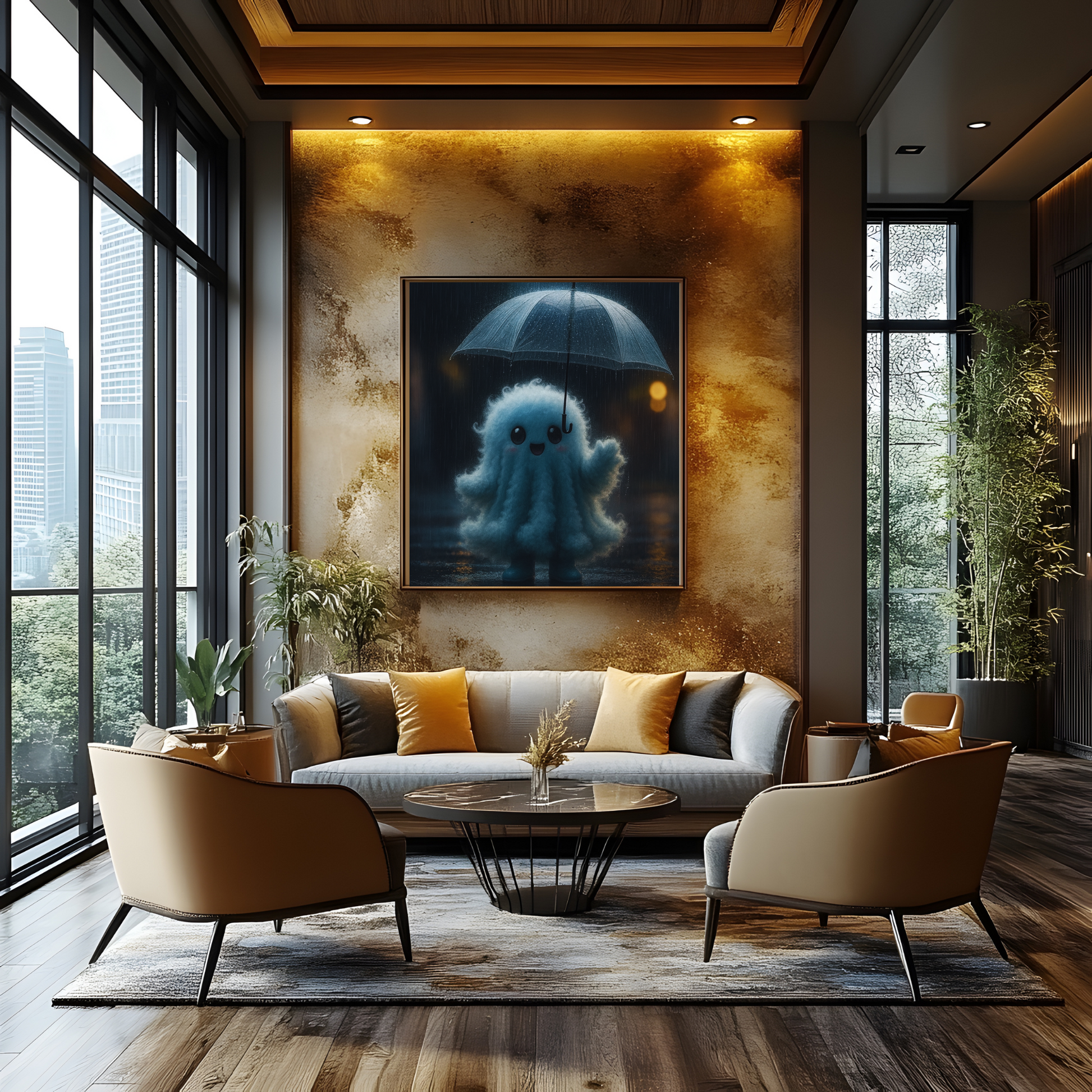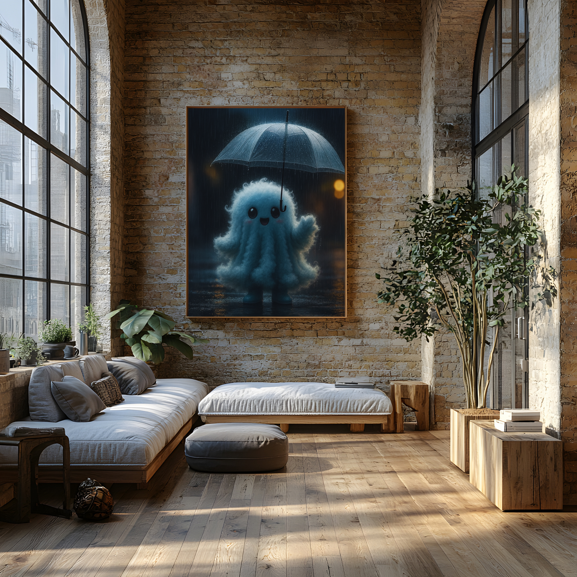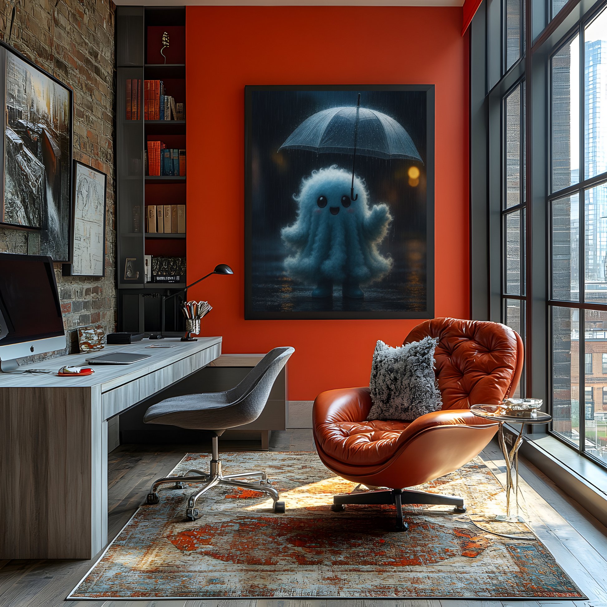 Bring et strejf af charmerende, spøgelse med en paraply ind i dit hjem med dette unikke digitale kunsttryk, der viser et spøgelse med en paraply! Dette fængslende maleri fremkalder en nostalgisk, lidt uhyggelig, men alligevel elskværdig scene, perfekt til at tilføje karakter til din sæsonbestemte eller helårsindretning. De rige teksturer og den atmosfæriske baggrund skaber en vidunderligt stemningsfuld atmosfære.