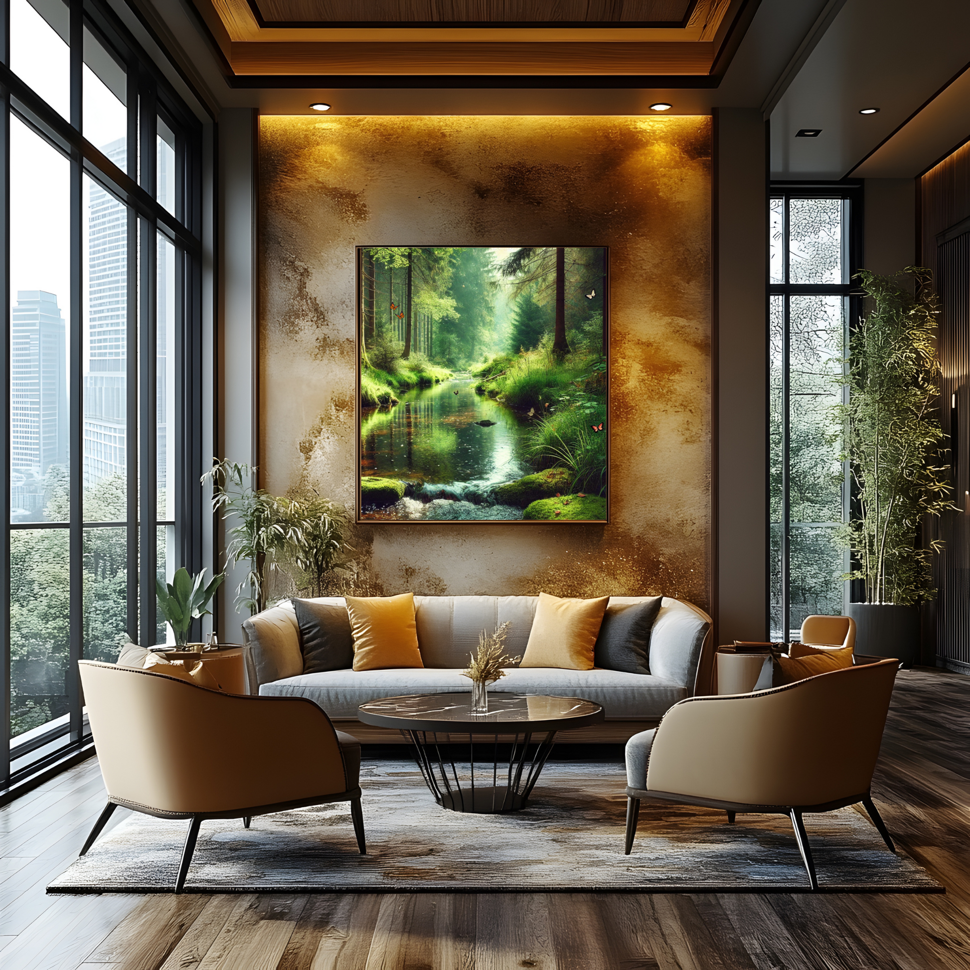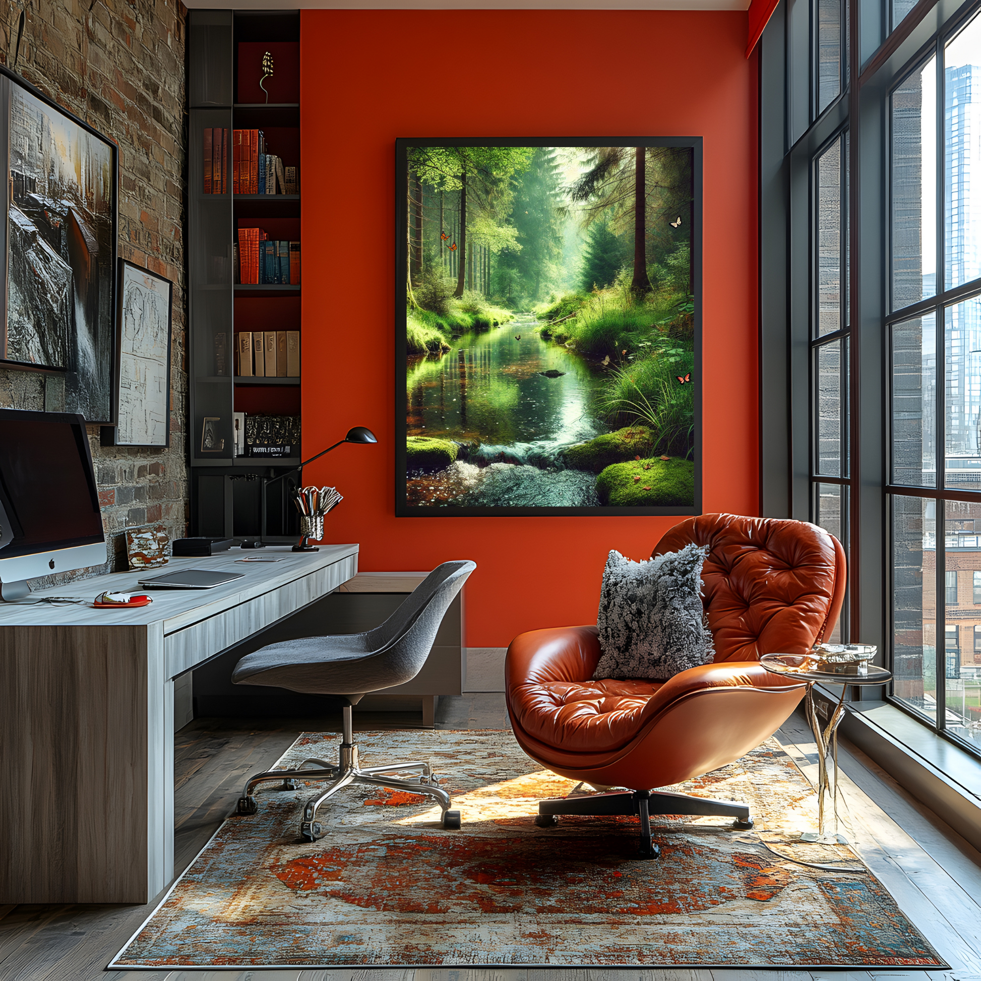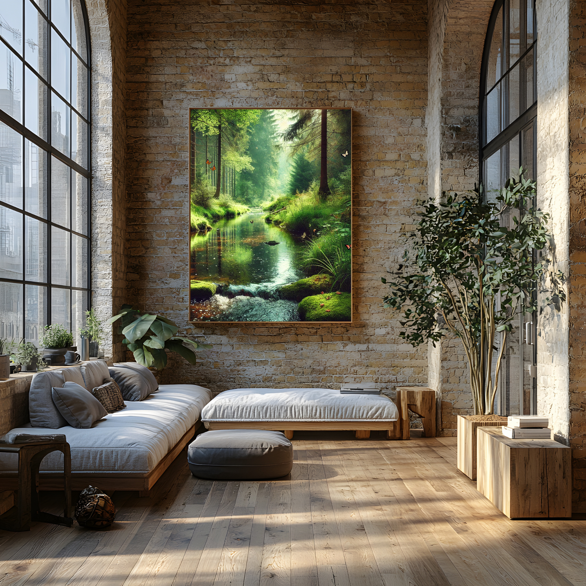Bring et strejf af charmerende skov- og vandnatur til dit hjem med dette unikke digitale kunsttryk! Dette fængslende maleri fremkalder en nostalgisk, lidt uhyggelig men samtidig elskværdig scene, perfekt til at tilføje karakter til din sæsonbestemte eller helårspynt. De rige teksturer og den stemningsfulde baggrund skaber en vidunderligt dyster atmosfære.