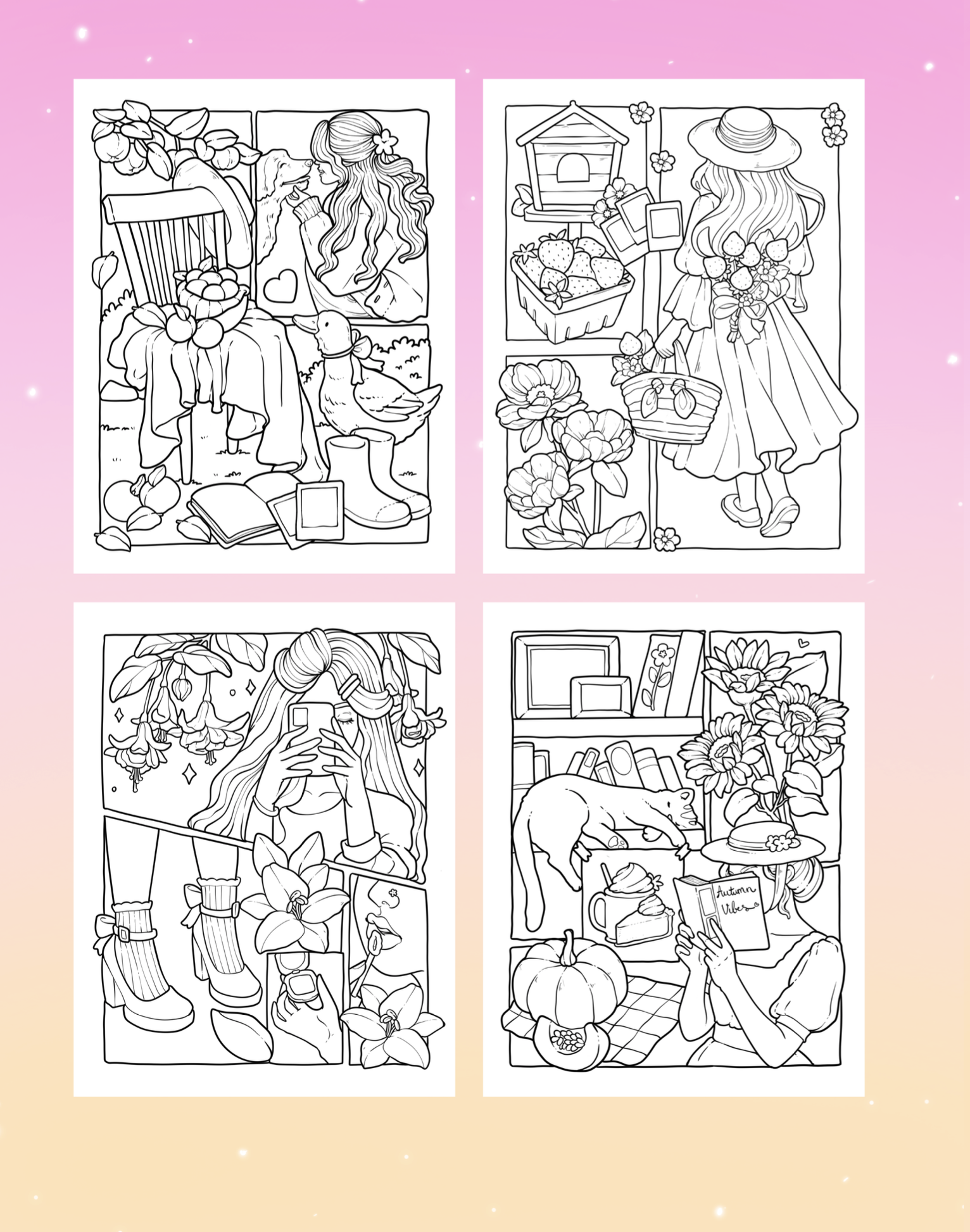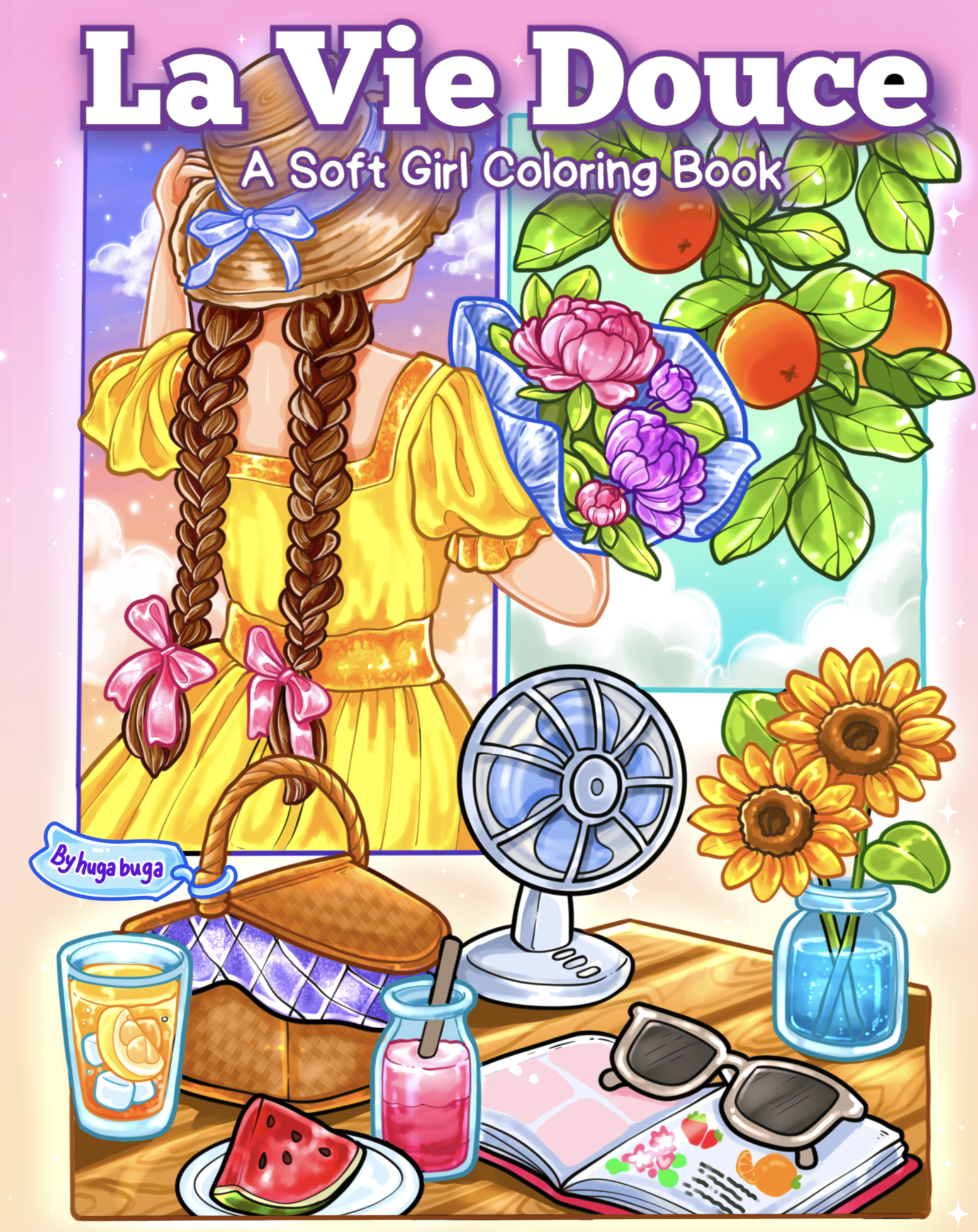 **La Vie Douce -a soft girl coloring book er en håndtegnet Malebog | 30 Sider Huga Buga | Design til Afslapning og Sjov